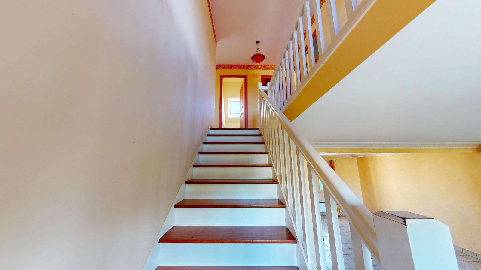 Dès le rez-de-chaussée, tout est pensé pour votre confort : un hall d’entrée dessert une cuisine aménagée et équipée, puis une vaste pièce de vie très lumineuse avec cheminée, ouvrant directement sur une terrasse exposée plein Ouest. Une chambre et un WC avec lave-mains complètent ce niveau, offrant la possibilité de vivre de plain-pied si vous le souhaitez.