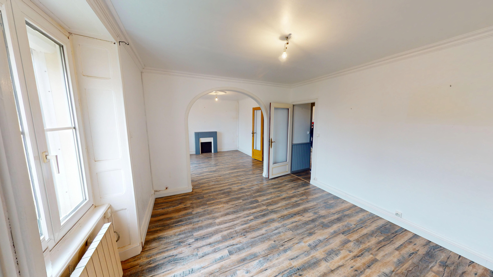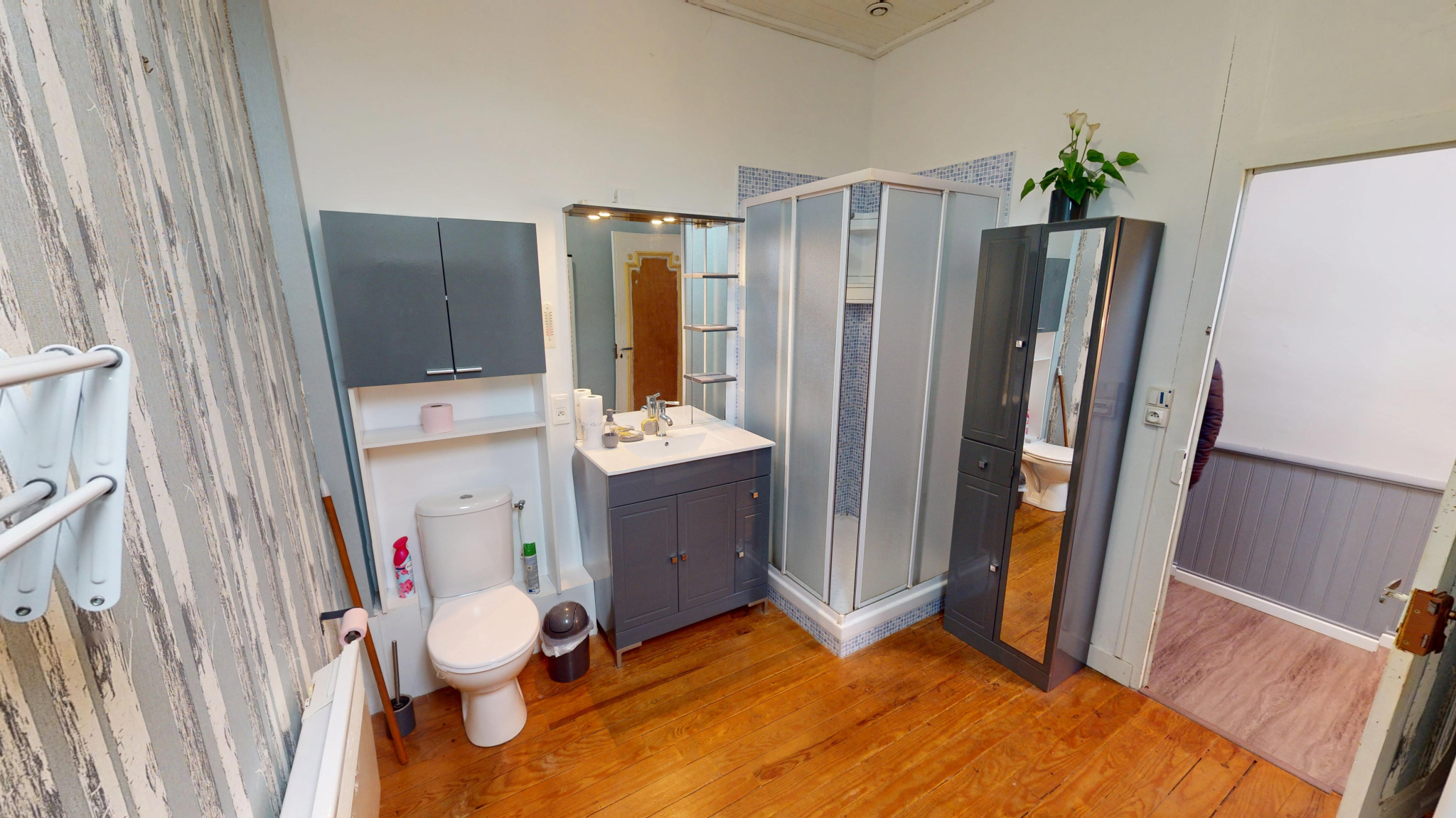 Au 2ème étage (par un escalier en bois) : grande salle d'eau avec wc et escatrappe qui permet d'accéder au grenier aménageable (vmc), trois chambres dont une offrant une petite vue sur la mer. Deux chambres sont en enfilade mais on peut créer facilement un dégagement pour qu'elles aient leur propre entrée.