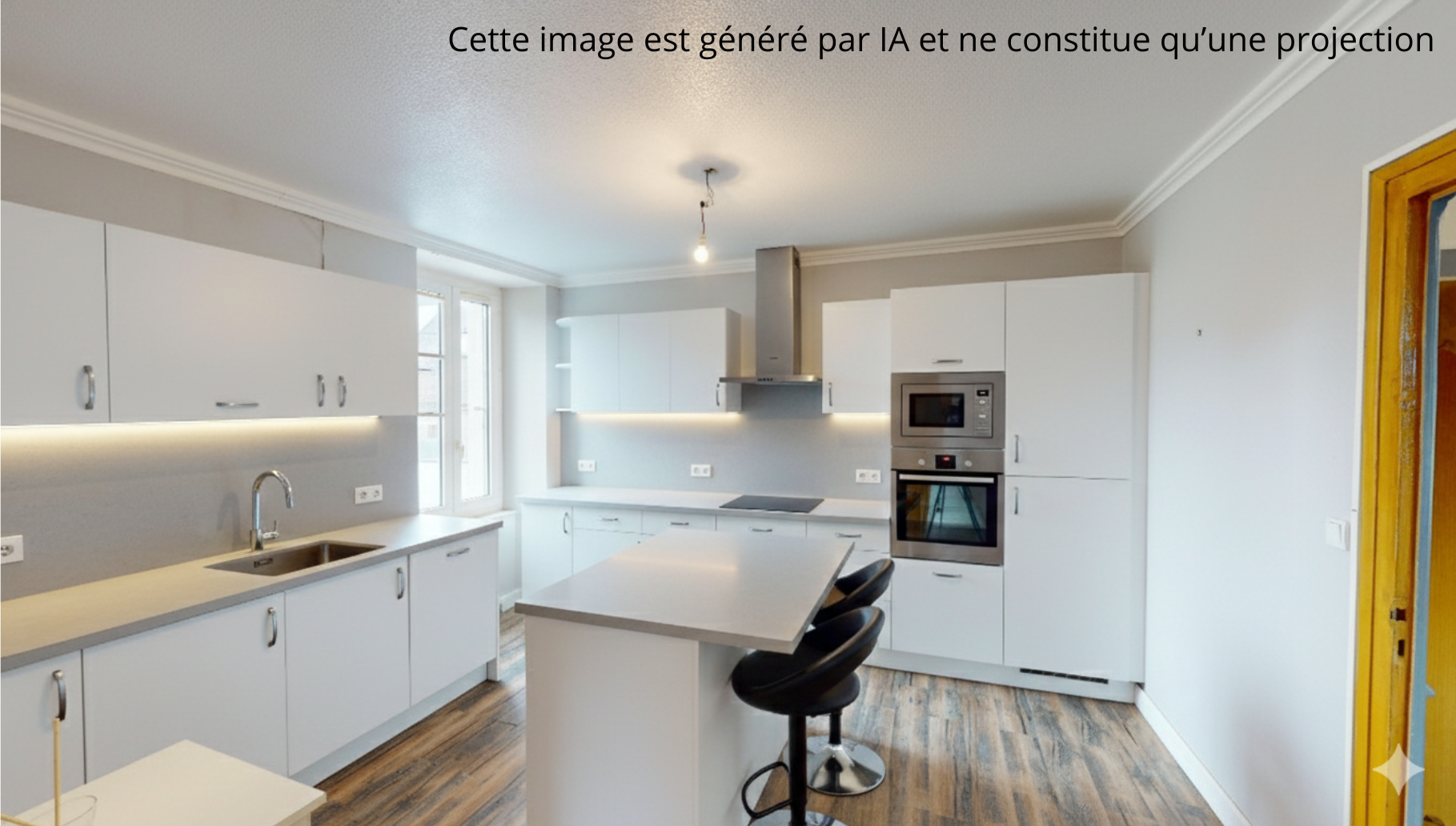 Au rdc : appartement de 50 m² (accessible par l'extérieur et par l'intérieur) : sas d'entrée avec wc, pièce de vie, placards sous l'escalier, cuisine indépendante, une chambre, cabinet de toilette avec lavabo, bidet et wc sani-broyeur (possibilité de rajouter une douche), une lingerie/buanderie avec une porte-fenêre qui donne sur une terrasse côté sud-ouest.