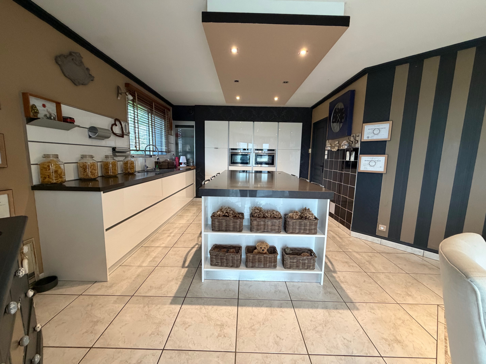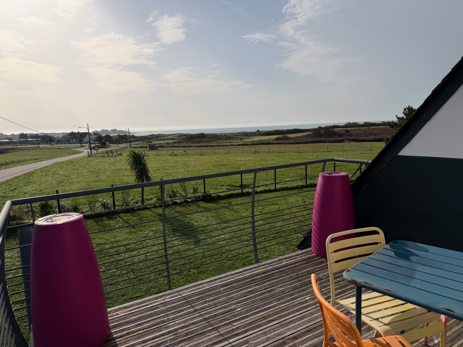 Cette maison du début des années 2000, de 127.34 m², située à 500 m de la plage avec vue mer du rdc et de l'étage bien sûr, comprend : hall d'entrée, belle pièce de vie lumineuse (50 m² environ cuisine comprise) avec baies vitrées qui donnent sur la grande terrrasse carrelée, cuisine ouverte aménagée et équipée, cellier/buanderie, garage (24 m²). Une chambre avec terrasse, un wc, un espace rangement. A l'étage : mezzanine/bureau, une salle de bains avec double vasque, un wc, trois chambres dont une avec terrasse. Terrain clos de 1 070 m² avec portail électrique, carport et grand espace bitumé (parking). Chauffage au sol par géothermie au rdc et à l'étage (classe énergétique B).