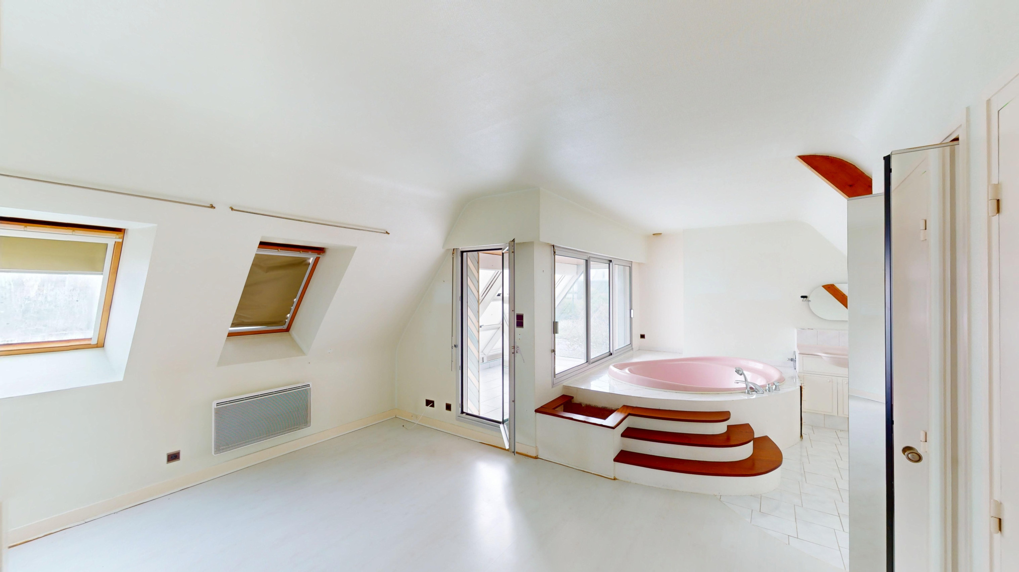 À l'étage, une mezzanine avec placards vous accueille, suivie d'une belle suite parentale avec wc indépendant et salle de bains ouverte sur un sas véranda. Vous y trouverez également une deuxième chambre avec placards, une troisième chambre, un WC et une salle d'eau.