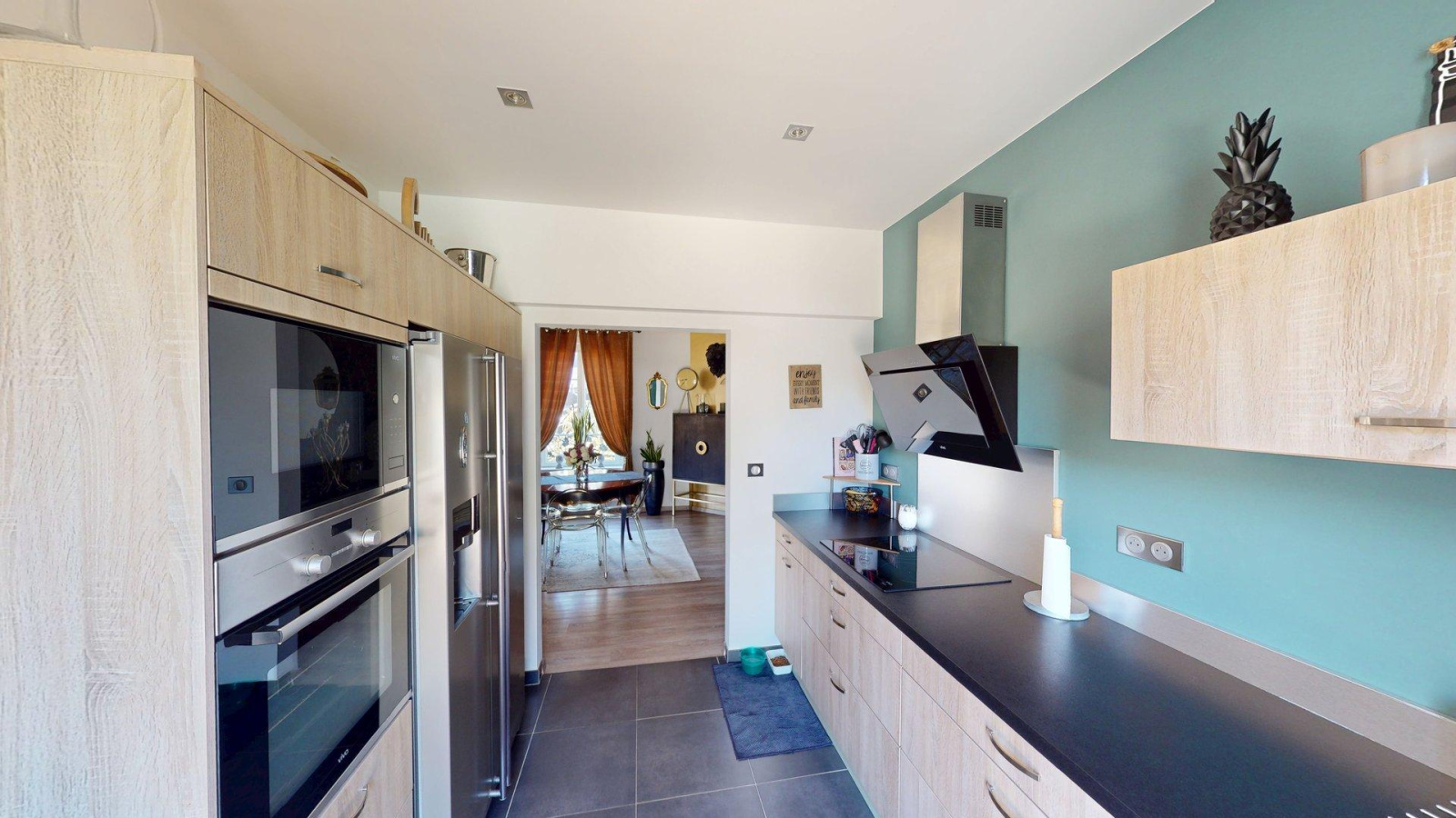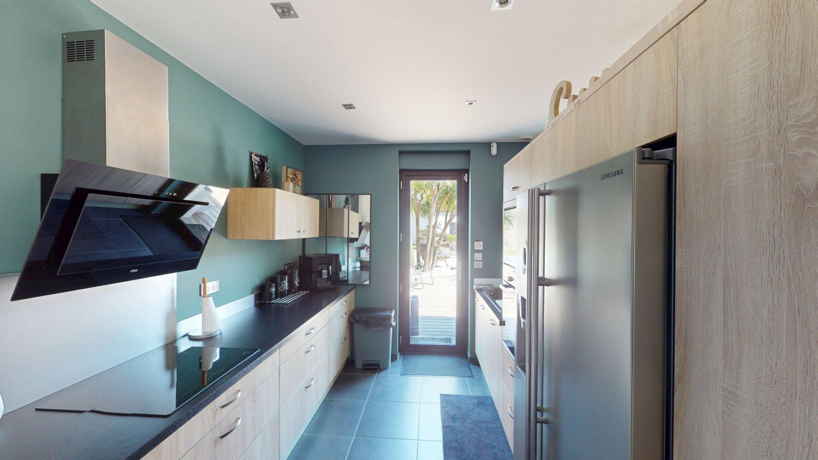 Elle se compose, au rez-de-chaussée, d’un spacieux hall d’entrée, d’un WC avec une buanderie fonctionnelle, d’un salon/salle à manger chaleureux et lumineux, ainsi que d’une cuisine contemporaine, entièrement aménagée et équipée, parfaite pour les amateurs de gastronomie.