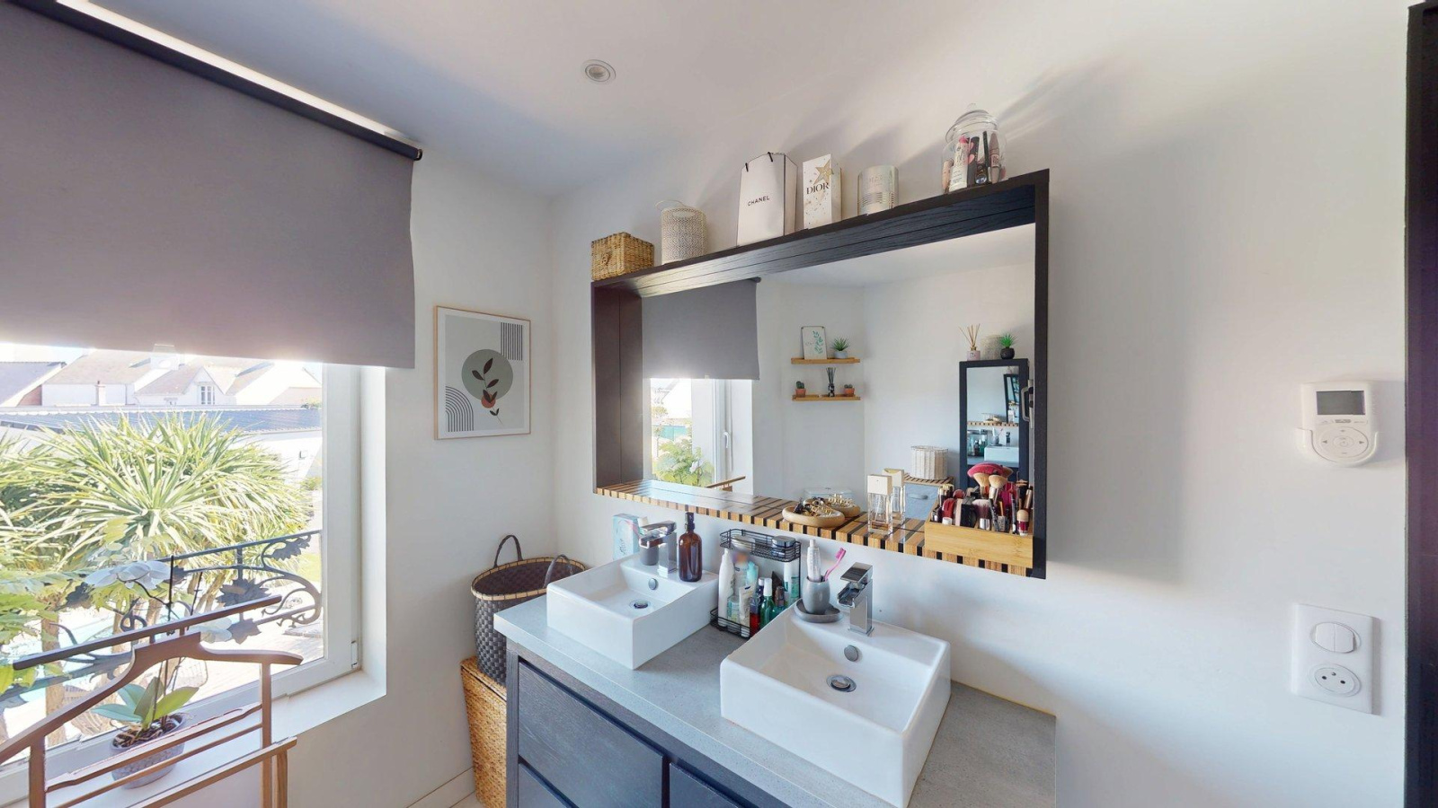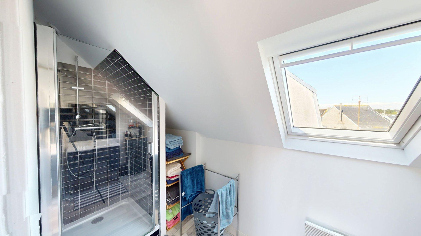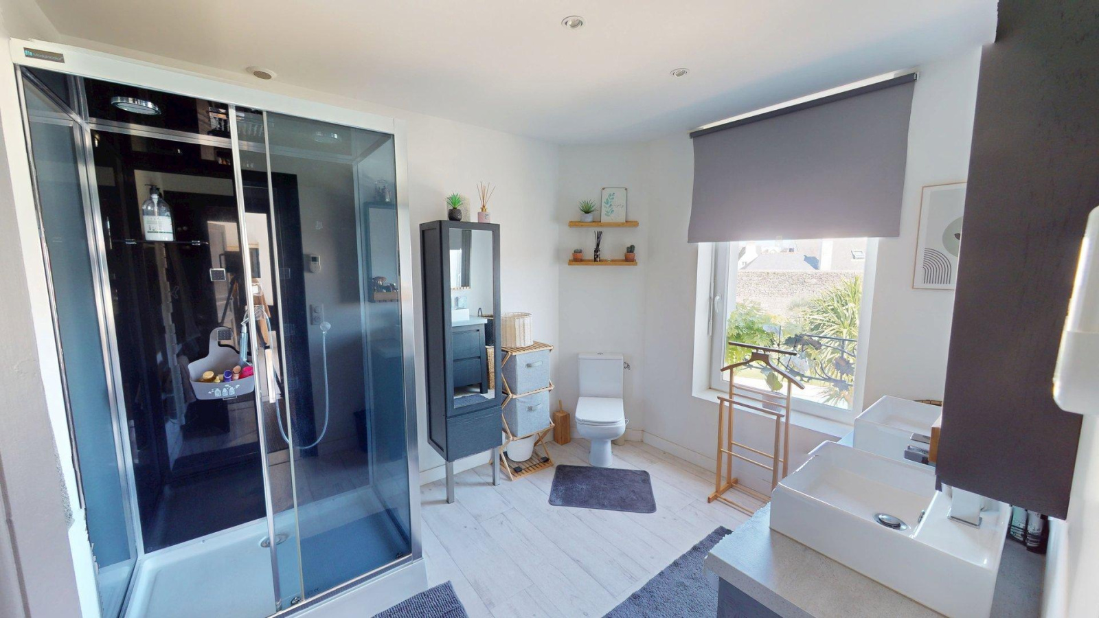 Le 2ème étage accueille deux autres chambres, ainsi qu’une vaste suite parentale avec sa salle d’eau privative, offrant un espace intime et lumineux, idéal pour se détendre. Vous bénéficierez d’une petite vue sur la mer, ajoutant une touche de poésie à ce bien d’exception.
